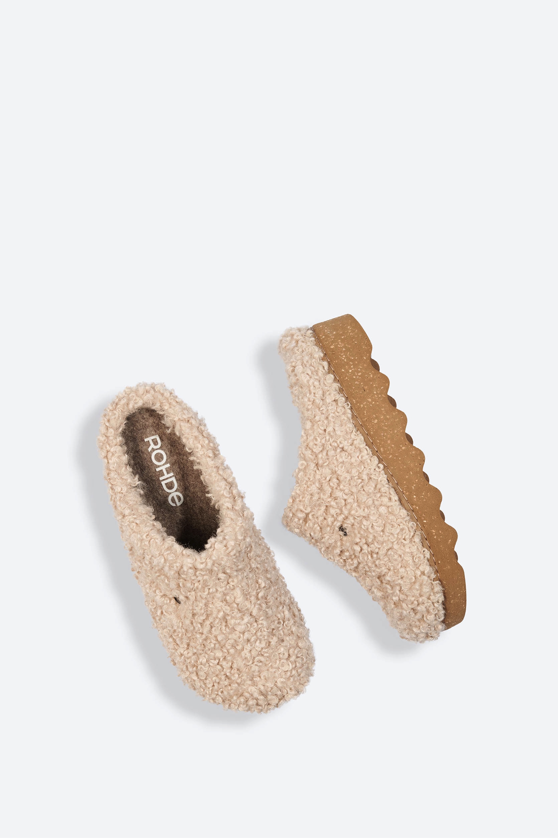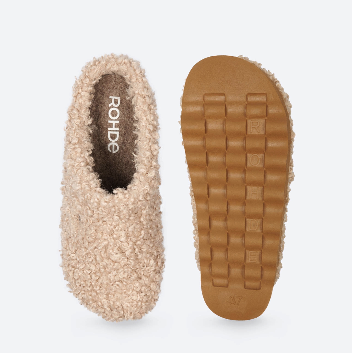 Der Rohde 6104-13 Foggia Clog ist ein luxuriöser Damen-Hausschuh, der gemütlichem Komfort und hochwertiger Optik entspricht. Das Obermaterial besteht aus flauschigem Plüsch/Textil, das sich angenehm weich anfühlt und Wärme spendet. Im Inneren sorgt eine Filz-Innersohle für ein angenehmes Fußklima und komfortables Tragegefühl. Die leichte und rutschfeste PU-Laufsohle macht den Schuh nicht nur für Zuhause, sondern auch für kurze Wege geeignet. Der Schuh kommt in der Farbe Beige/Silk und in Weite G – ideal für komfortbewusste Damen mit normaler Fußweite.