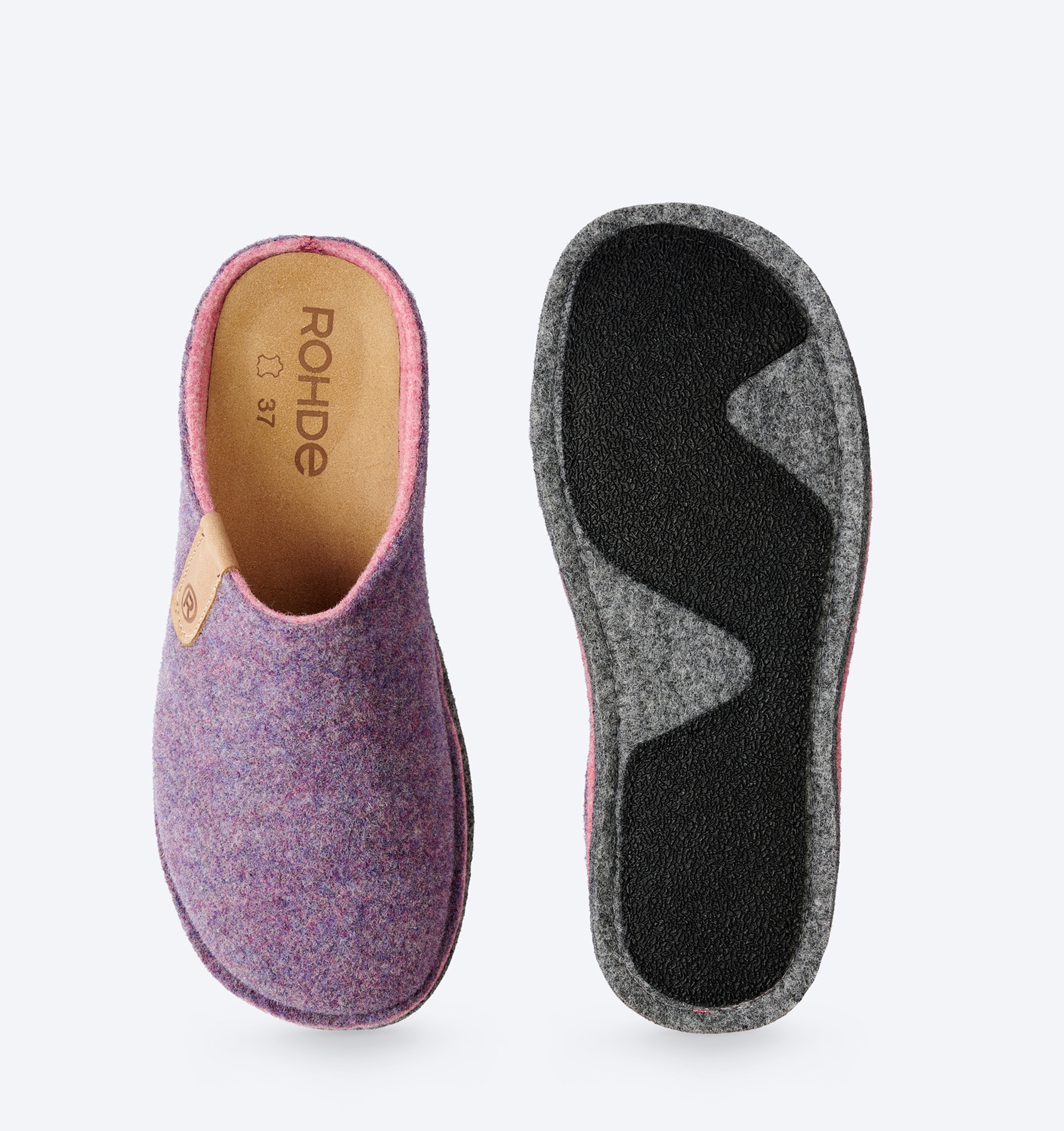 Die flexible, rutschfeste Laufsohle gewährleistet sicheren Stand im Wohnbereich und erlaubt sogar kurze Wege nach draußen. Die offene, luftige Form der Pantolette sorgt für ein angenehmes Klima und macht sie zum perfekten Alltagsbegleiter. Ein idealer Hausschuh für Damen, die Wert auf Bequemlichkeit und solide Qualität legen.