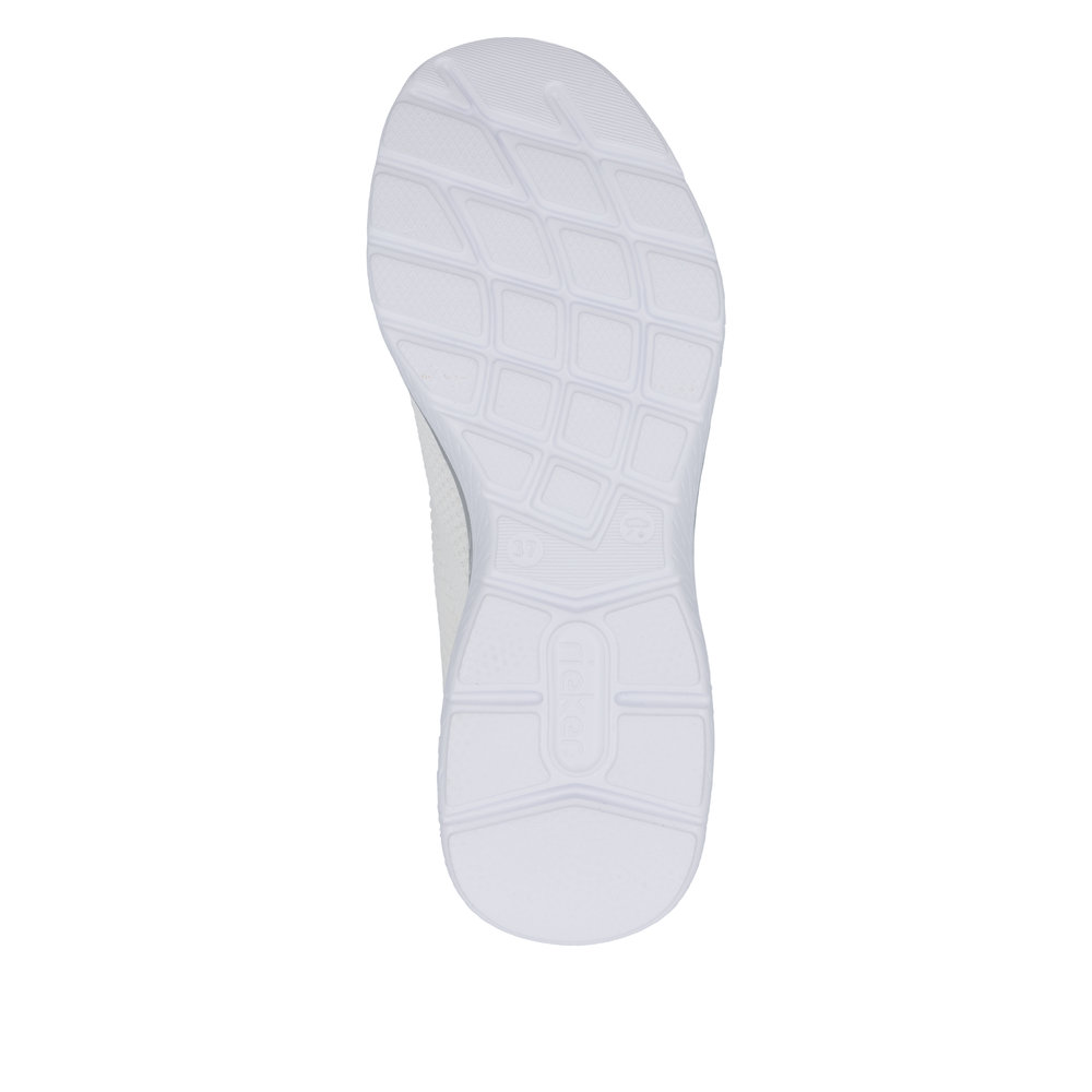 Der Rieker M5066-80 ist ein sportlich-leichter Damen-Sneaker in klassischem Weiß. Das atmungsaktive Textil-Obermaterial sorgt für ein angenehm frisches Fußklima und hohen Tragekomfort.