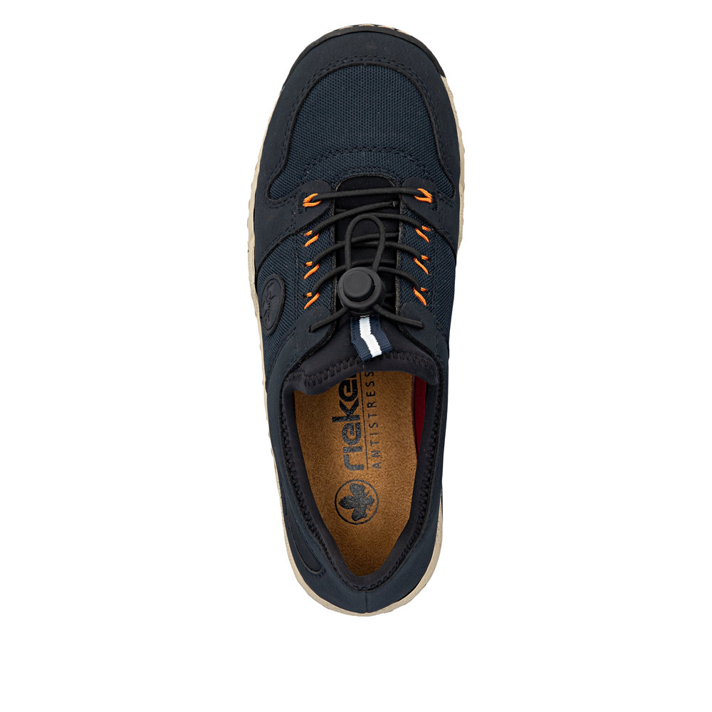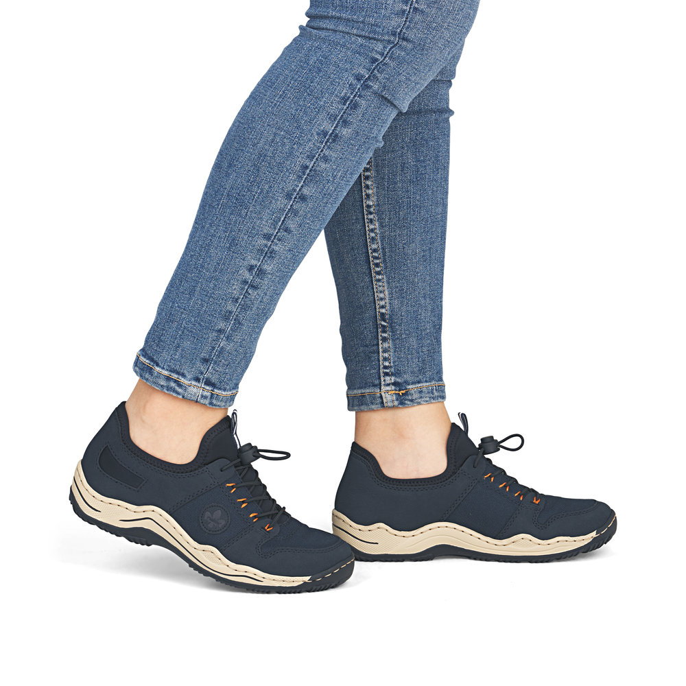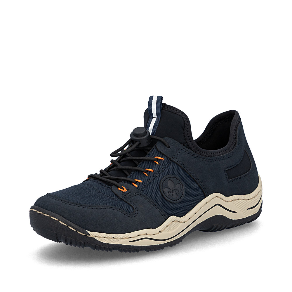 Der Rieker L0593-14 ist ein komfortabler Damen-Slipper in klassischem Blau, der besonderen Wert auf Bewegungsfreiheit und Alltagstauglichkeit legt. Durch die Gummi-Schnellschnürung lässt sich der Schuh schnell und einfach anziehen und sitzt zugleich zuverlässig am Fuß.