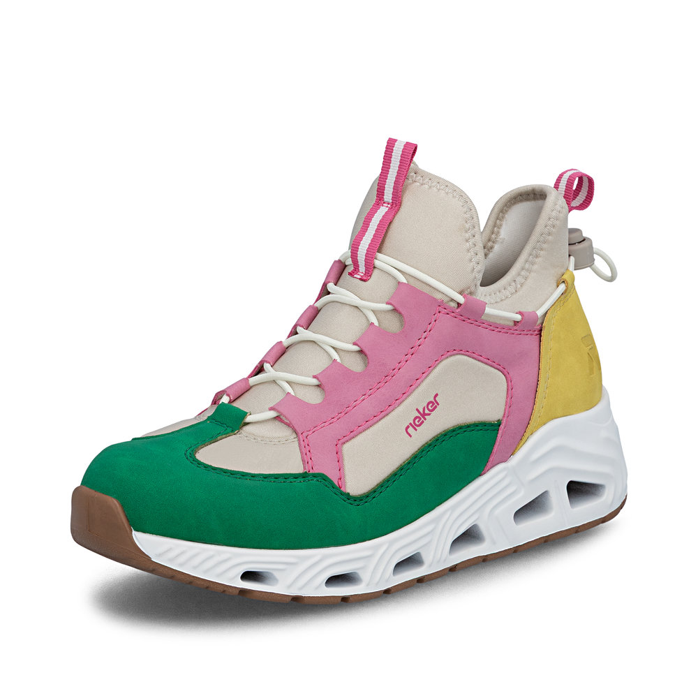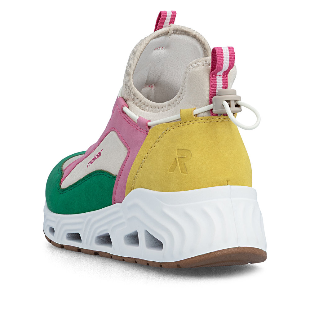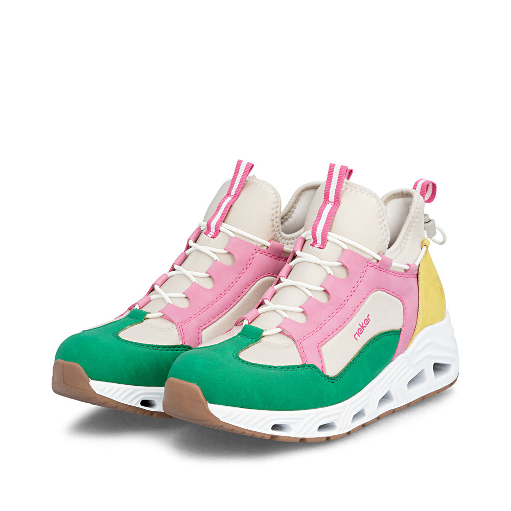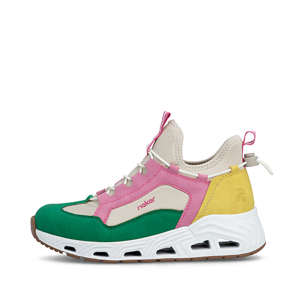 Der Rieker N5254-92 ist ein sportlich-bequemer Damen-Sneaker Low in Multicolore, der Leichtigkeit und Alltagstauglichkeit perfekt verbindet. Die Gummi-Schnellschnürung ermöglicht einen schnellen Einstieg und sorgt für einen sicheren Sitz – ganz ohne aufwendiges Binden. Innen unterstützt das leichte Futter ein angenehmes Tragegefühl, während die weich gepolsterte, herausnehmbare Decksohle für Komfort sorgt und bei Bedarf durch eigene Einlagen ersetzt werden kann. Abgerundet wird das Modell durch eine ultraleichte, flexible Laufsohle, die Schritte angenehm dämpft und ein entspanntes Abrollen unterstützt. Ideal für Alltag, Freizeit und aktive Tage.