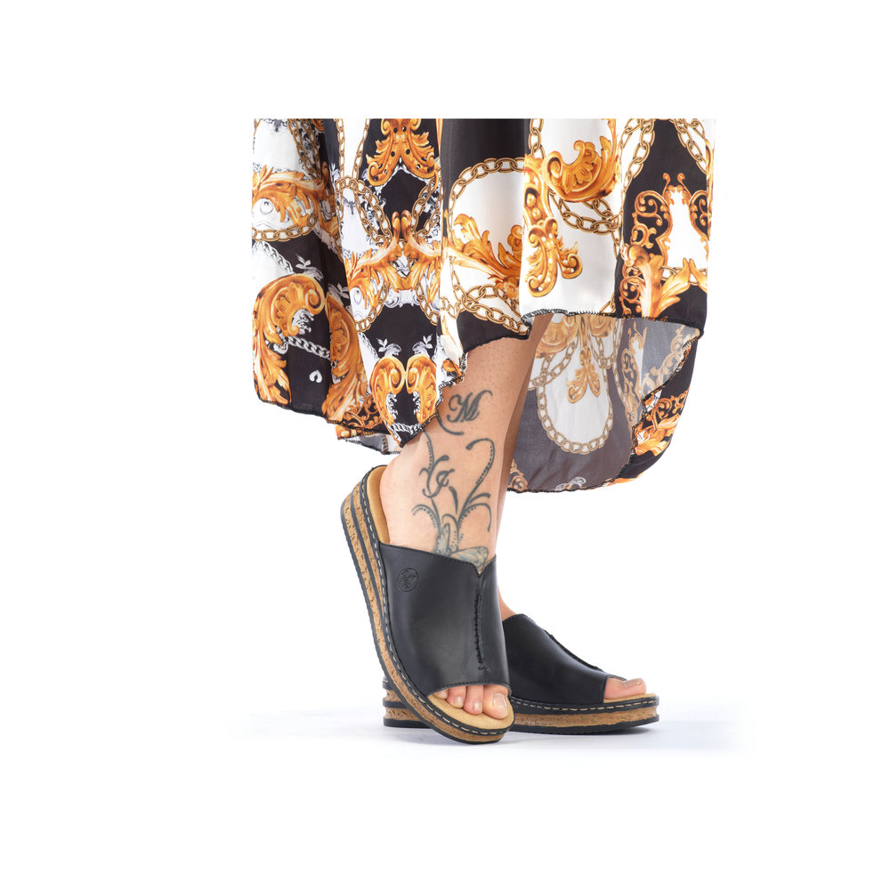 Die Rieker Damen Pantolette 629M9-00 überzeugt durch zeitloses Design und hohen Tragekomfort. In klassischem Schwarz gehalten, lässt sich dieses Modell vielseitig kombinieren und ist der ideale Begleiter für Alltag, Freizeit und Urlaub. Dank des offenen Schlupfdesigns ist die Pantolette besonders bequem an- und auszuziehen.