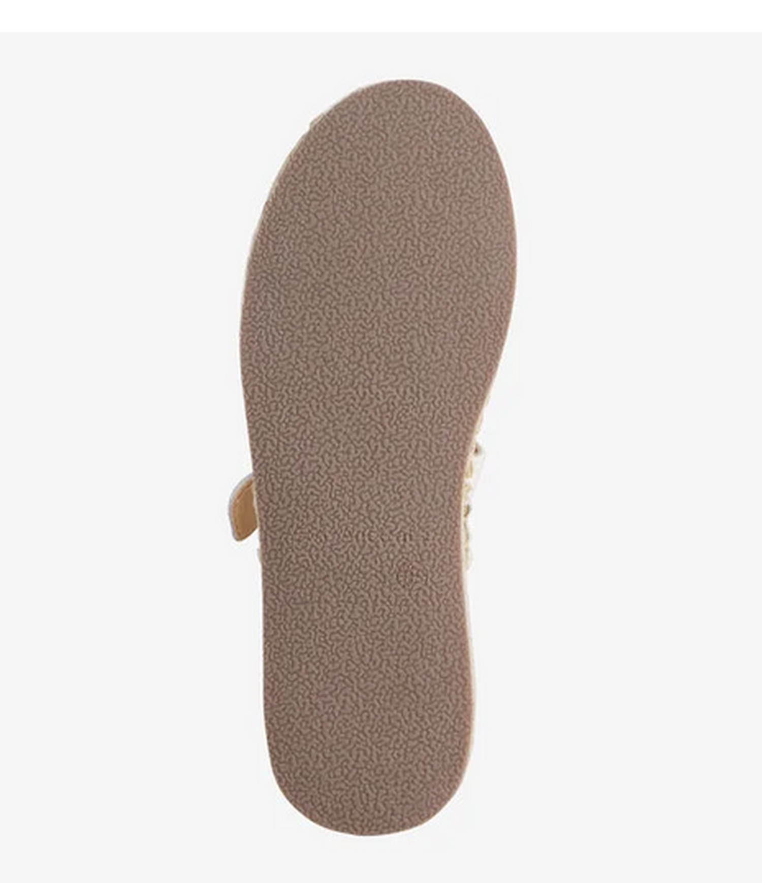 Für den natürlichen Look sorgt die Jute-Zwischensohle, während die TPR-Außensohle flexiblen Halt im Alltag bietet.