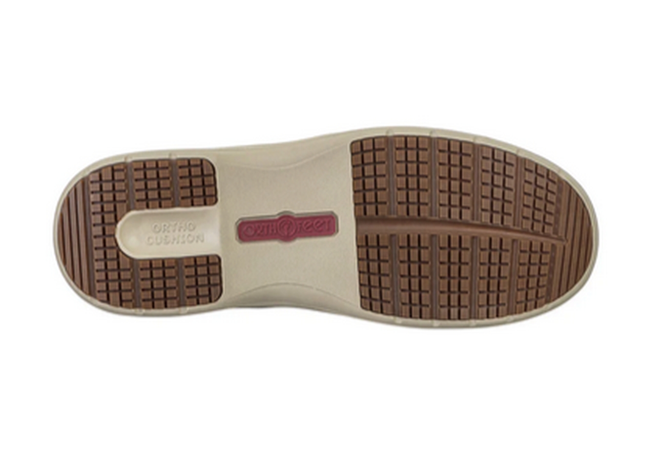 Das elastische, wasserabweisende Obermaterial sorgt für eine angenehme Passform und reduziert Druckstellen. Die breite Zehenbox bietet zusätzlichen Raum für natürliche Bewegungsfreiheit. Das ergonomische Ortho-Cushion™ System mit herausnehmbarer Premium-Einlage unterstützt das Fußgewölbe und sorgt für eine spürbare Entlastung bei jedem Schritt.