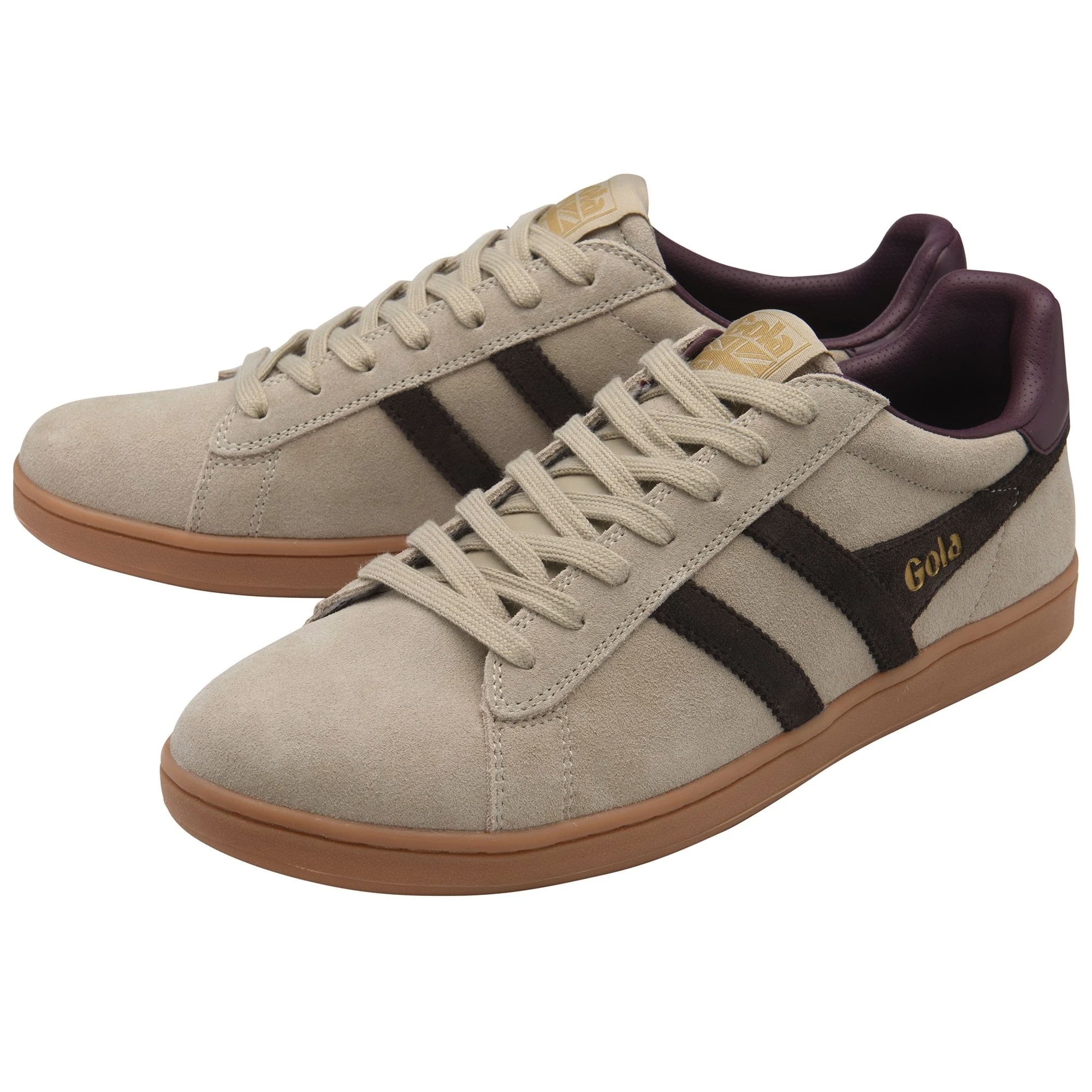 Der Gola Equipe II Suede CMB387LC2 ist ein klassischer Herren-Sneaker im sportlichen Retro-Design. Das hochwertige Wildleder-Obermaterial in der Farbkombination Bone, Mocha und Red Ochre sorgt für eine markante und zugleich zeitlose Optik.