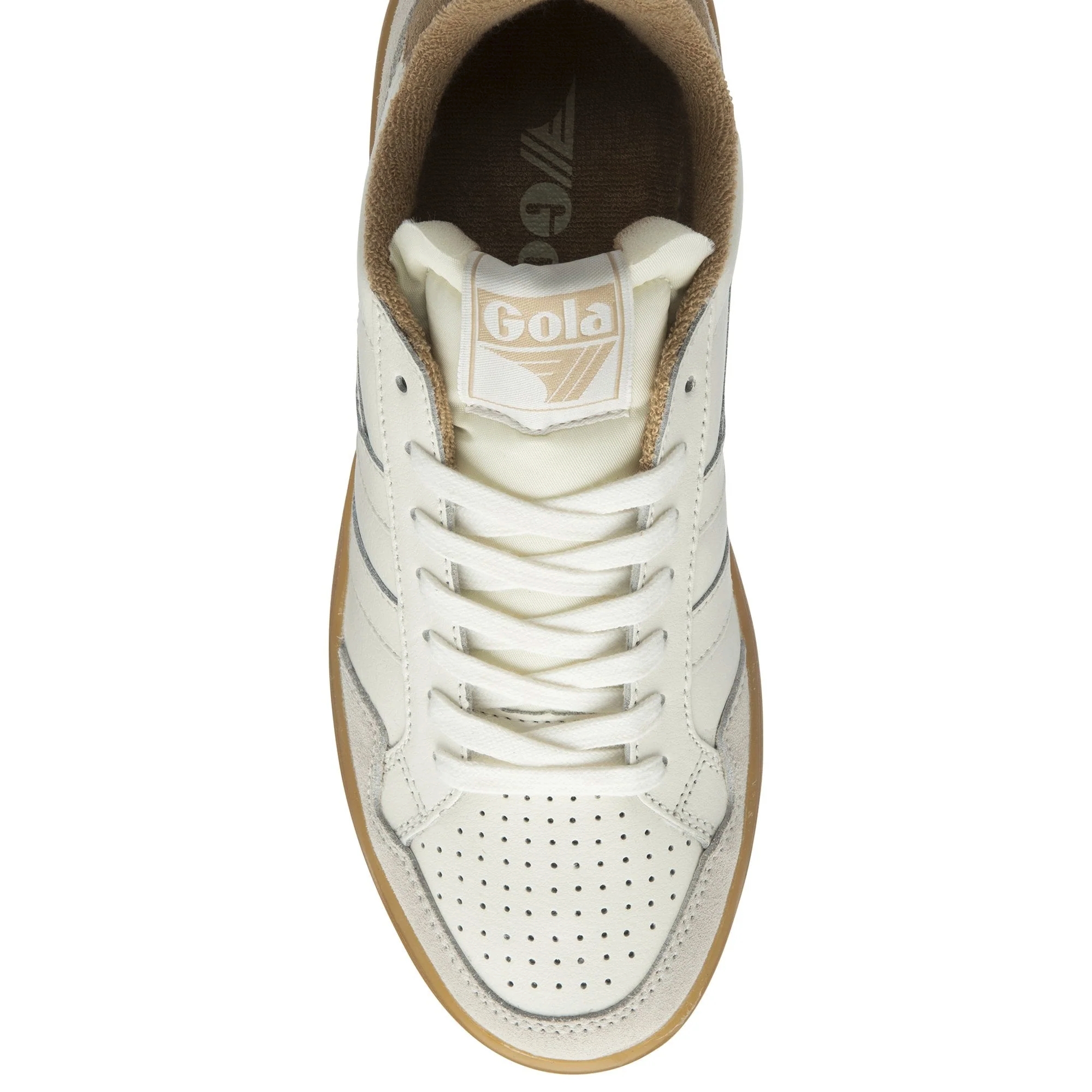 Vintage-Perforationen im Vorderfußbereich und typische Gola-Details verleihen dem Schuh einen authentischen Heritage-Look. Die robuste Gum-Gummisohle sorgt für zuverlässigen Halt und ein angenehmes Laufgefühl im Alltag.