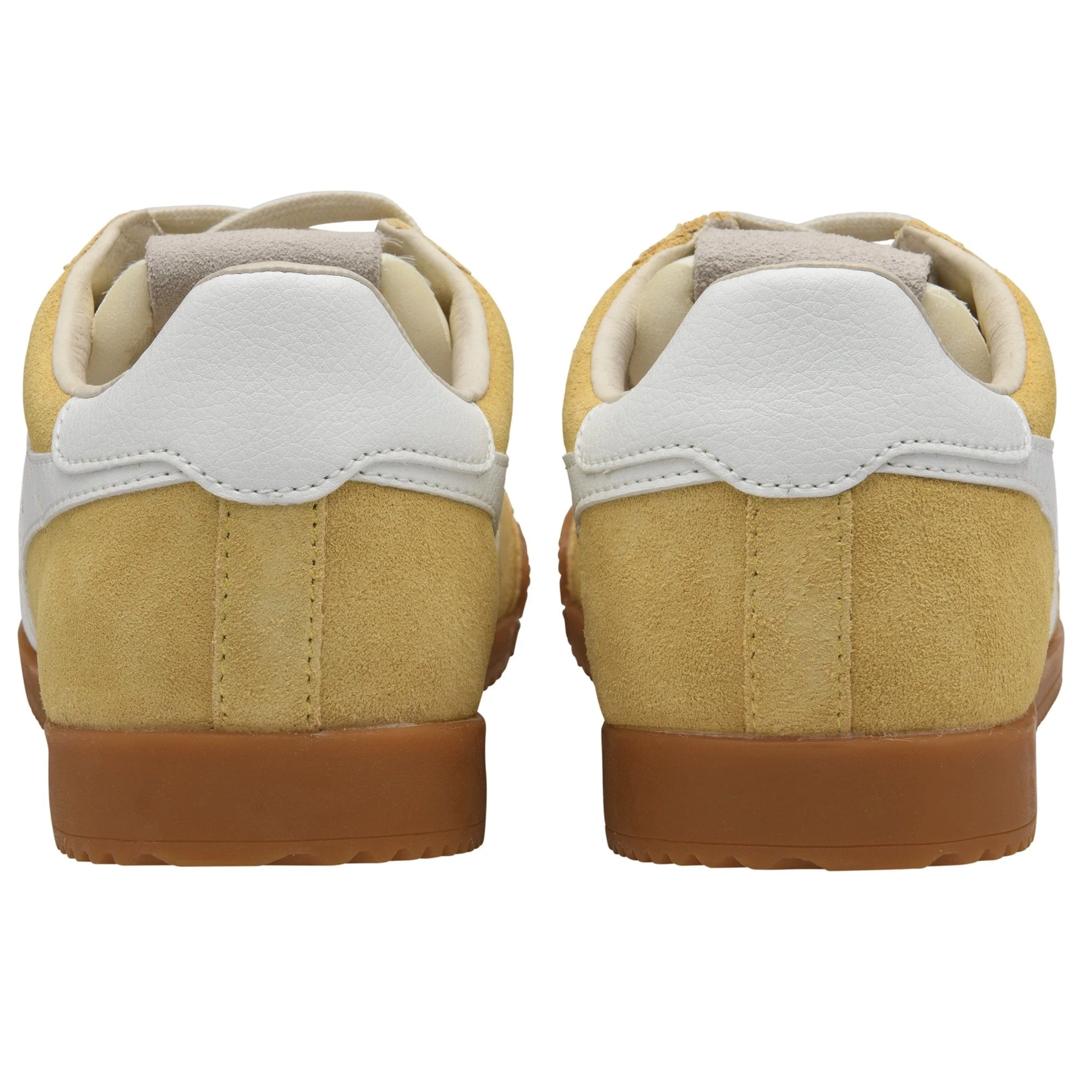 Der Gola Elan CLB538YA2 ist ein klassischer Damen-Sneaker im sportlichen Retro-Design. Das hochwertige Wildleder-Obermaterial in der Farbkombination Pollen und White sorgt für eine markante und zugleich zeitlose Optik.