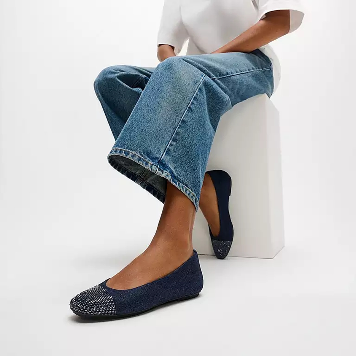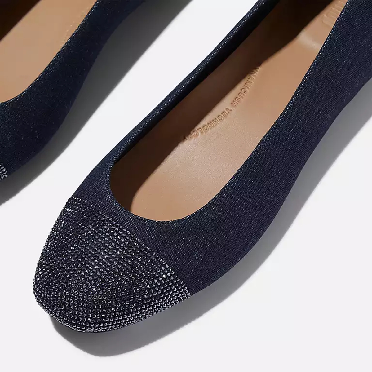 Ein besonderer Blickfang ist die funkelnde Cap-Toe-Zehenkappe mit Kristallverzierung, die dem klassischen Ballerina-Design einen eleganten Akzent verleiht.