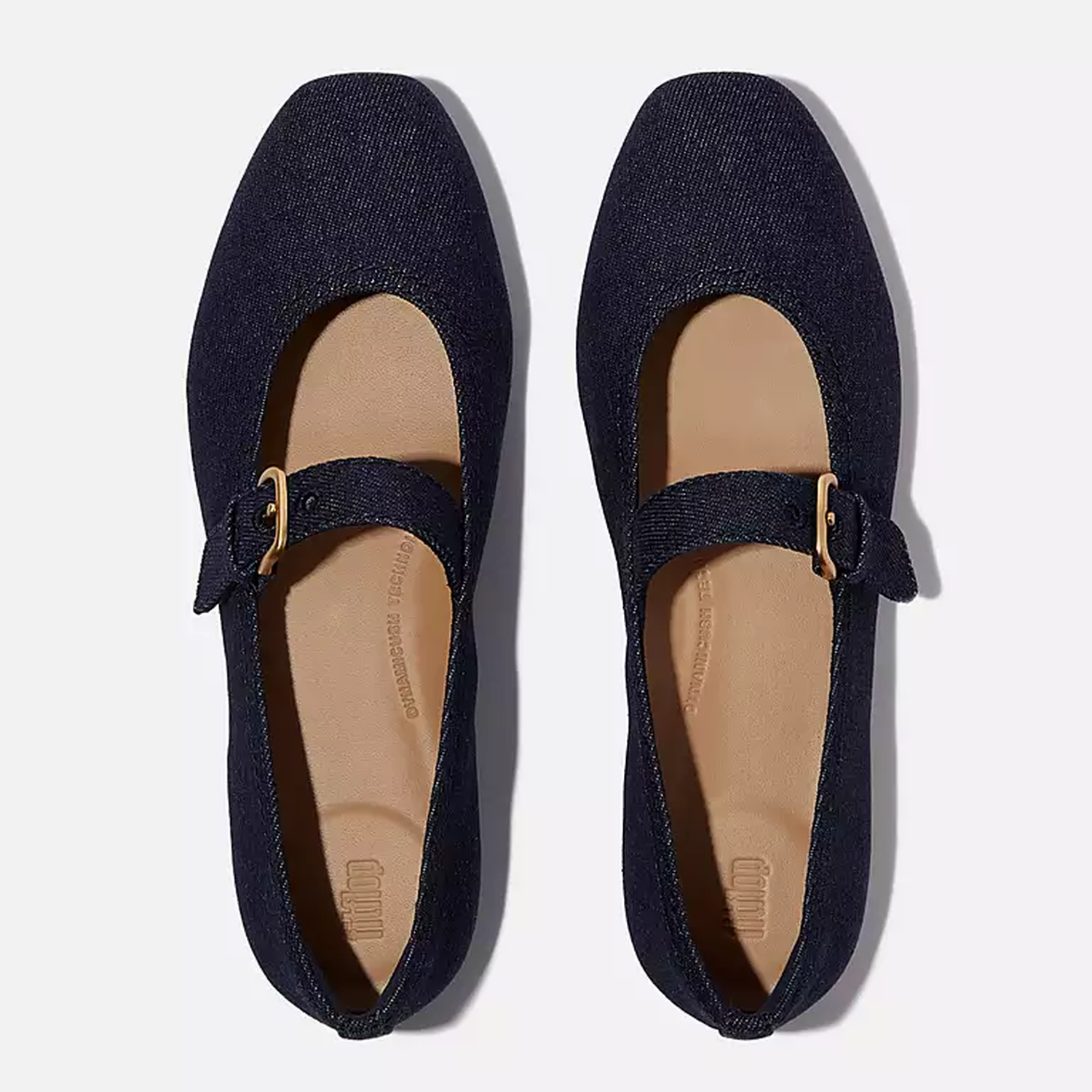 Die FitFlop Delicato Denim Mary Janes A0O-D71 verbinden klassisches Ballerina-Design mit modernem Komfort. Das Obermaterial aus Denim-Textil sorgt für eine stilvolle, zeitgemäße Optik und eine angenehme Passform. Der typische Mary-Jane-Riemen mit verstellbarer Schnalle bietet sicheren Halt und unterstreicht den femininen Look. Die integrierte Dynamicush™ Dämpfungstechnologie verfügt über versteckte, hochrückfedernde Komfortzonen, die Stöße effektiv absorbieren und den Druck auf den Fuß reduzieren. Dadurch wird ein angenehmes Laufgefühl auch bei längerem Tragen unterstützt. Das anatomisch geformte Fußbett fördert die natürliche Körperhaltung und sorgt für zusätzlichen Komfort. Die leichte und flexible Konstruktion macht die Ballerina zum idealen Begleiter für Alltag, Büro und Freizeit.