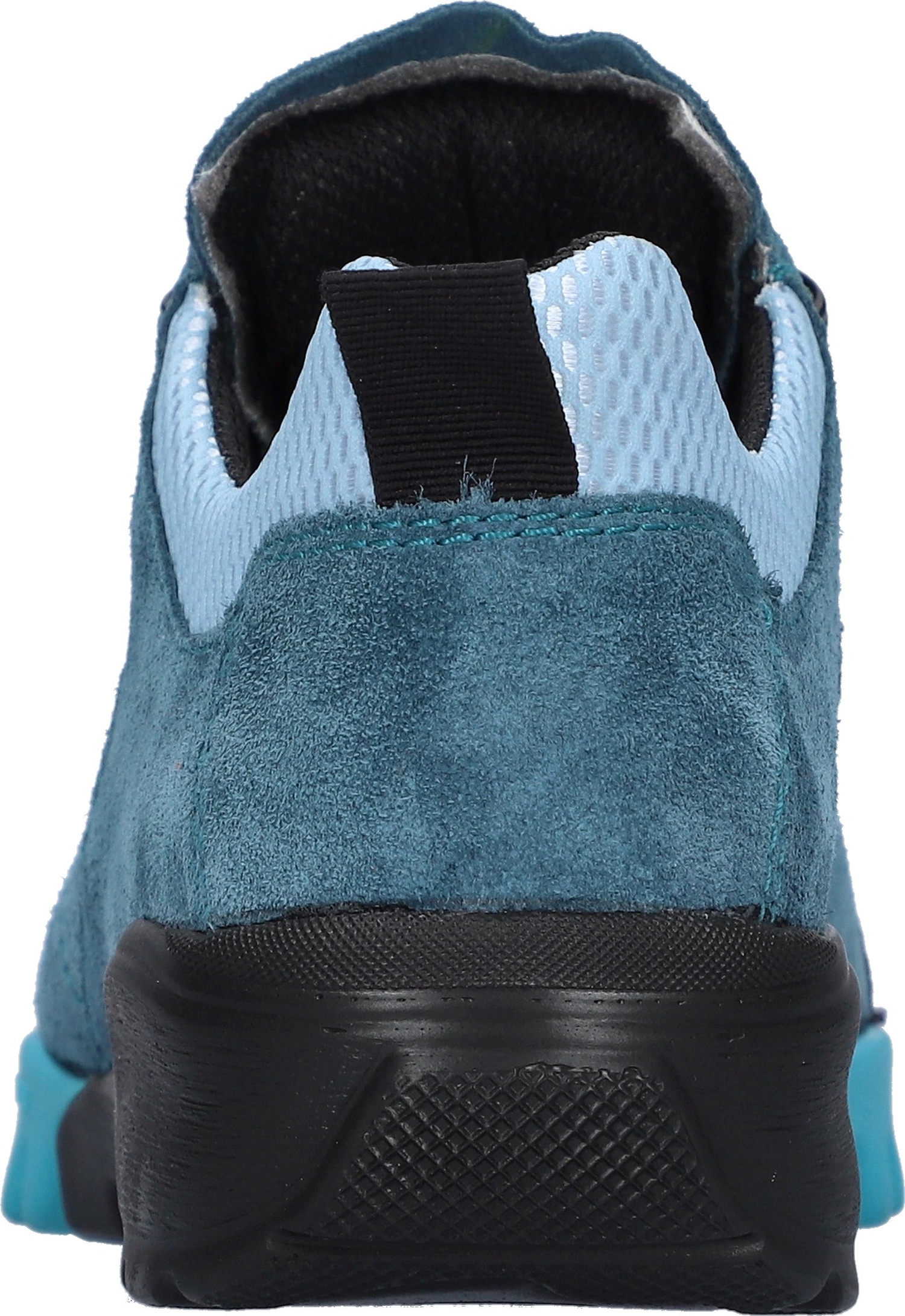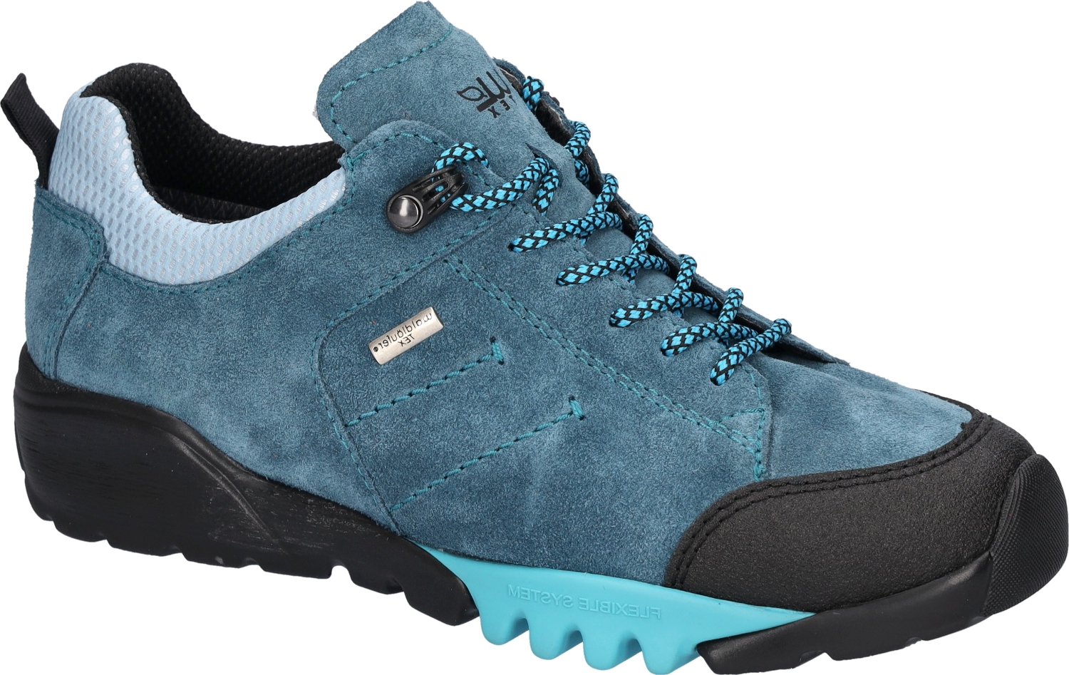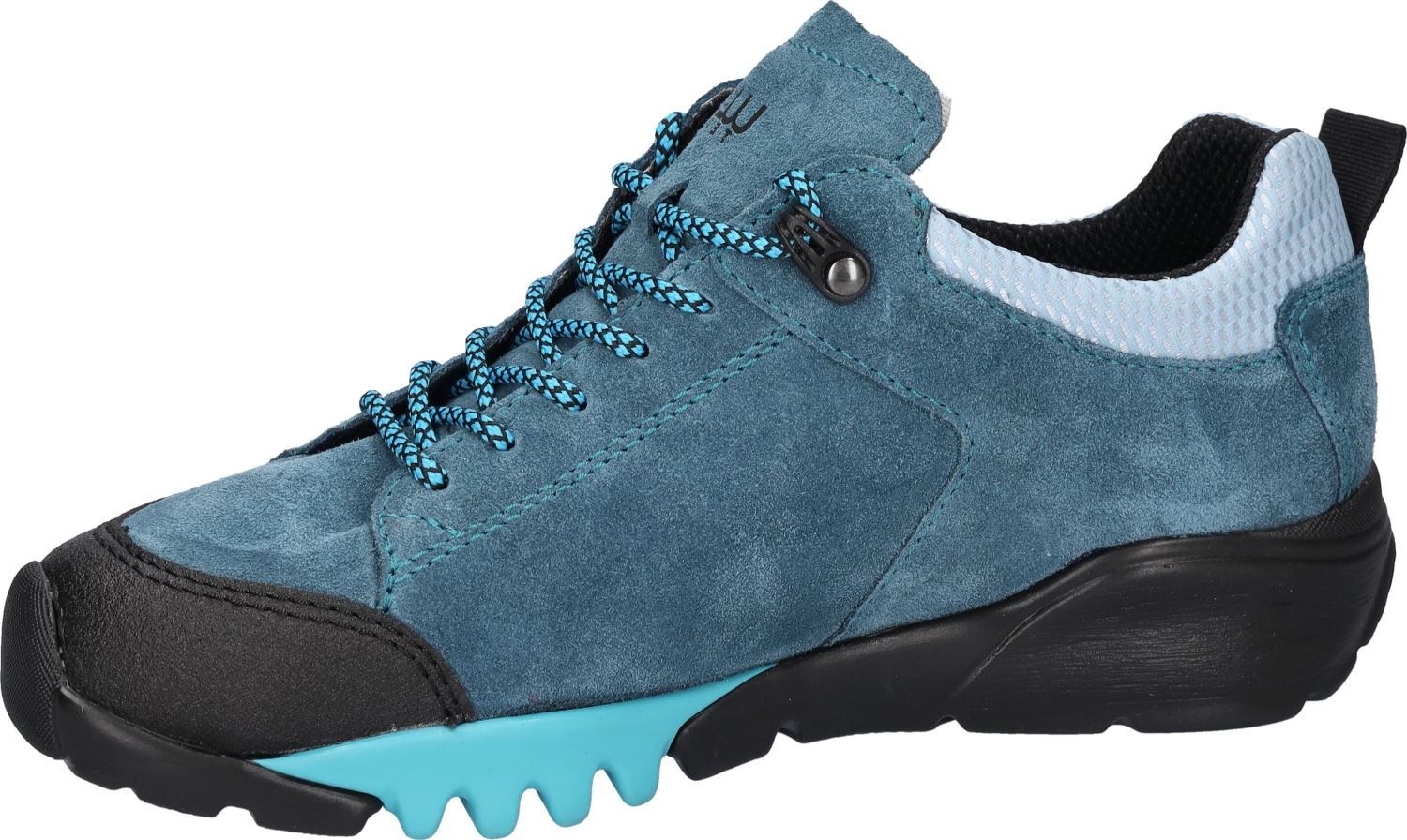 Der Waldläufer H-Amiata 787952-409 ist ein komfortabler Damen-Outdoor-Halbschuh, der Funktionalität und Tragekomfort optimal verbindet. Das Obermaterial aus Veloursleder und Textil sorgt für eine robuste und zugleich angenehme Passform. Die integrierte Waldläufer TEX-Membran ist wasserabweisend, winddicht und atmungsaktiv und hält die Füße auch bei wechselnden Wetterbedingungen trocken. Dank der H-Weite bietet der Schuh mehr Platz im Vorfußbereich und unterstützt ein entspanntes Gehen. Die Schnürung ermöglicht eine individuelle Anpassung und sorgt für sicheren Halt. Die herausnehmbare Einlegesohle bietet zusätzlichen Komfort und erlaubt den Einsatz eigener Einlagen. Die stoßdämpfende Laufsohle sorgt für Stabilität und ein angenehmes Laufgefühl – ideal für Alltag und Outdoor-Aktivitäten.
