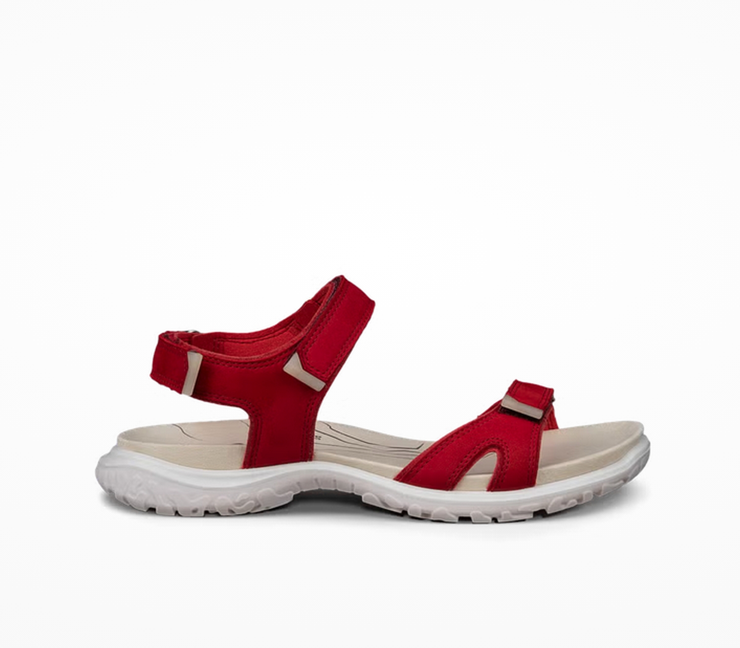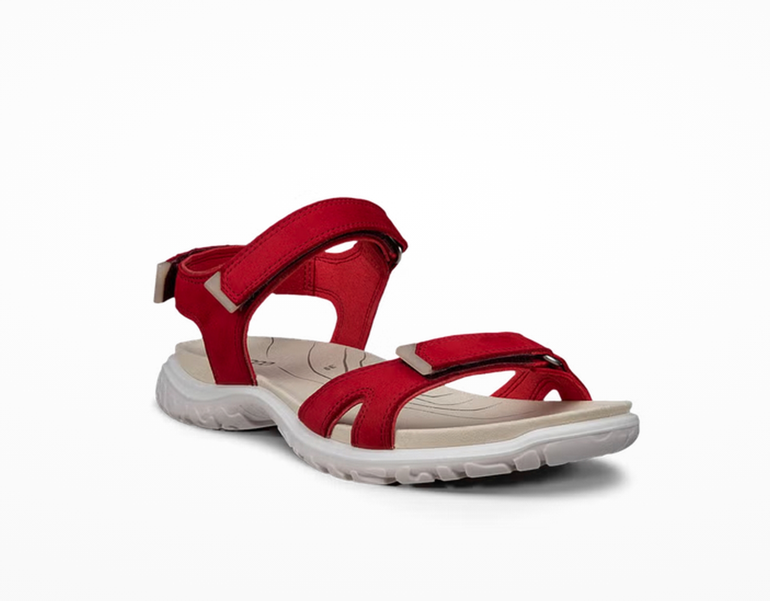 Gefertigt aus hochwertigem ECCO Premium Nubukleder bietet die Sandale eine angenehme Passform und hohe Strapazierfähigkeit. Die drei vollständig verstellbaren Klettriemen ermöglichen eine individuelle Anpassung und sicheren Halt.