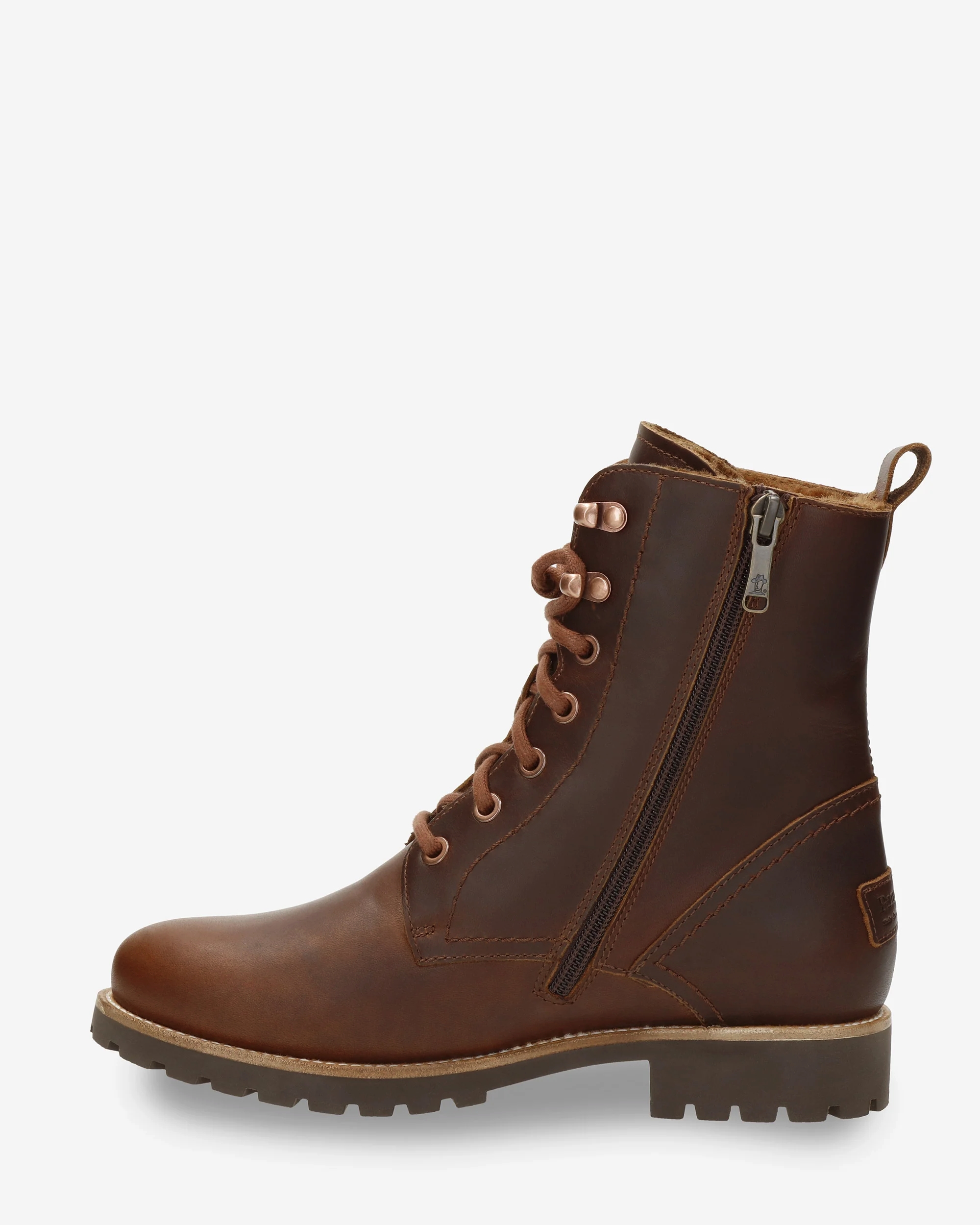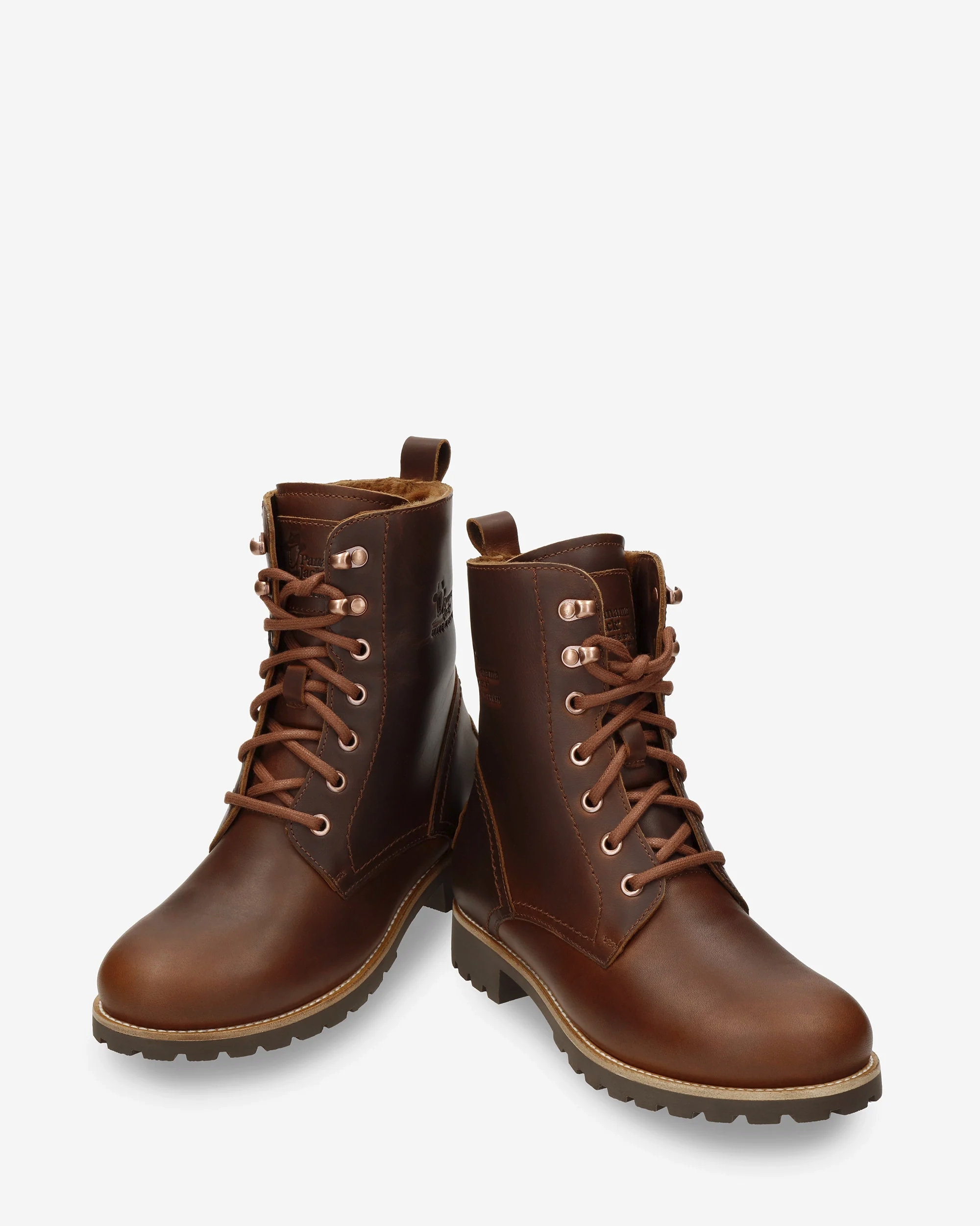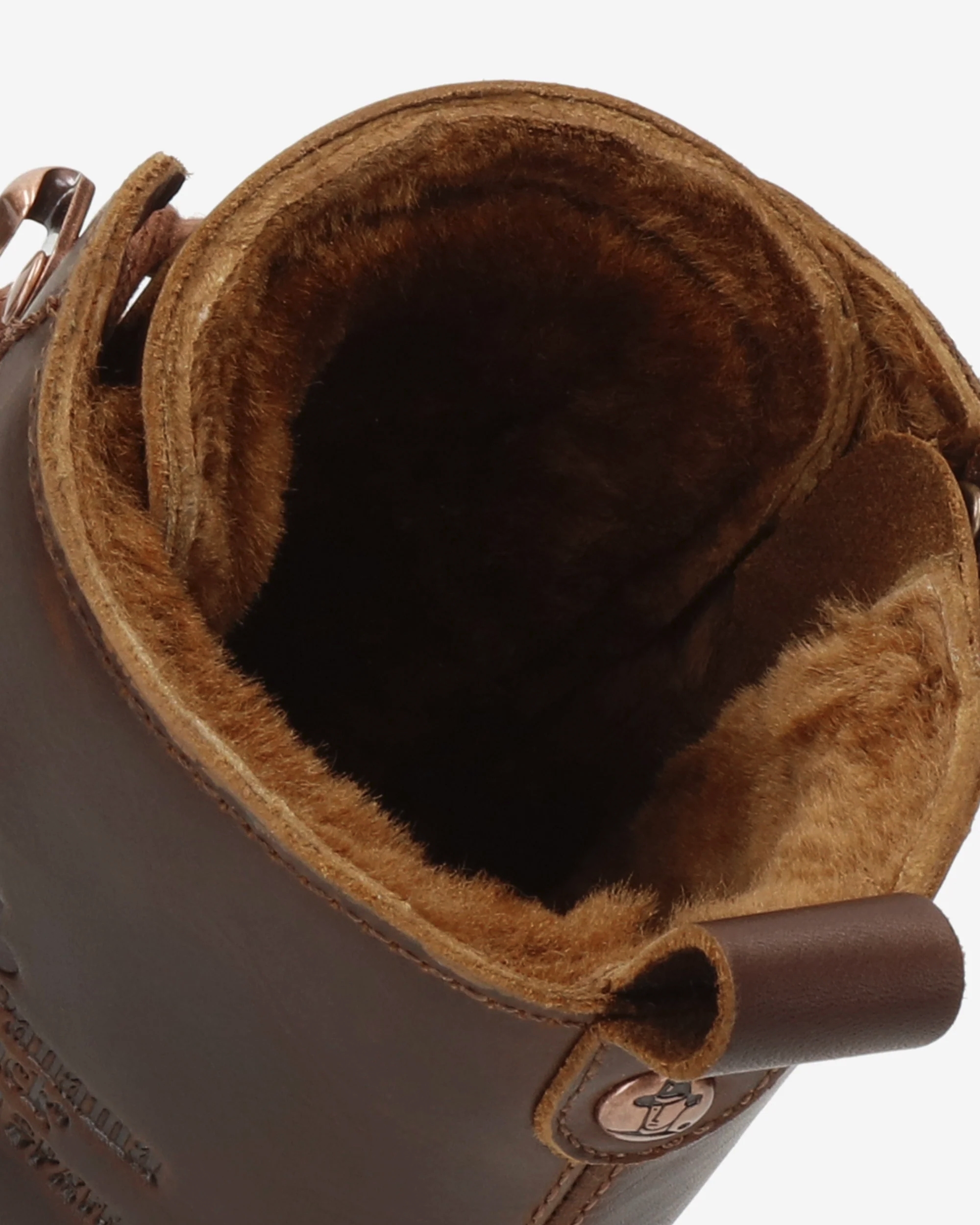 Die Panama Jack Fara Igloo Trav B8 sind robuste Damenstiefel, die Funktionalität und Stil vereinen. Gefertigt aus wasserfestem, geöltem Nappaleder in Tan (Braun), bieten sie Schutz vor Nässe und Kälte. Das Innenfutter aus weichem Lammfell sorgt für angenehme Wärme, während die herausnehmbare anatomische Einlegesohle zusätzlichen Komfort bietet. Die flexible und langlebige Gummisohle gewährleistet sicheren Halt auf verschiedenen Untergründen. Mit einer Schafthöhe von ca. 16 cm und einer Absatzhöhe von ca. 4 cm sind diese Stiefel sowohl für den Alltag als auch für Outdoor-Aktivitäten geeignet. Die Kombination aus Schnürung und seitlichem Reißverschluss ermöglicht ein einfaches An- und Ausziehen. Hergestellt in Spanien, steht der Fara Igloo Trav B8 für Qualität und Langlebigkeit.